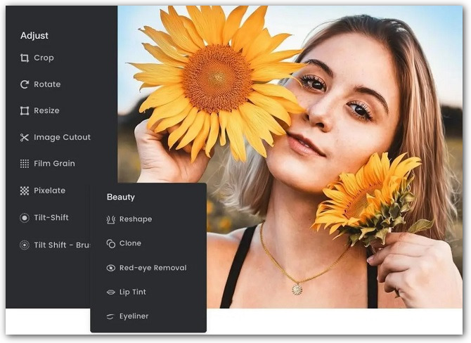 У фотографий можно удалить фон, корректировать цвет, яркость и контрастность изображения. Предусмотрена функция наложения эффектов и фильтров. Сервис работает как на компьютере, так и на смартфонах.